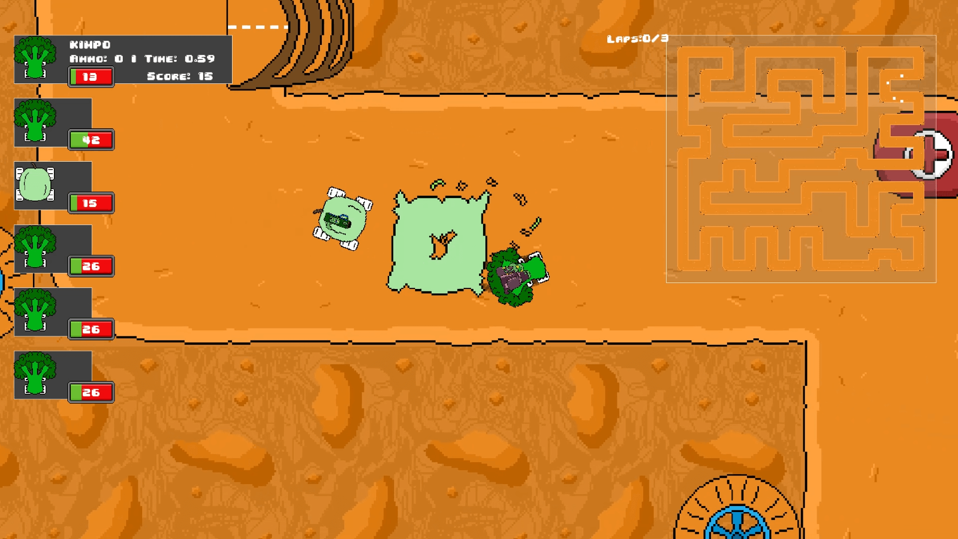 The top down 2D Racer from the Veg out World! One hell of a showdown with all your different characters, many different weapons, a heap of different tracks and a whole lot more!
